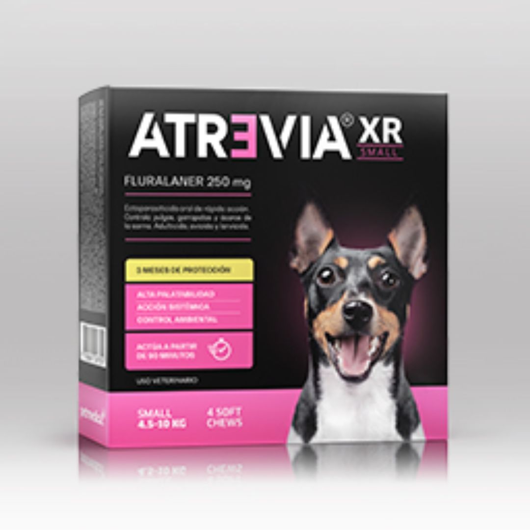 Atrevia® XR Small otorga un efectivo tratamiento ectoparasitario sistémico contra pulgas, garrapatas y ácaros, en base a fluralaner, que protege a los perros por 3 meses. Puede utilizarse en animales infestados o como preventivo. Empieza su acción en 90 minutos y mata a las pulgas en 8 horas y a las garrapatas en 12 horas.