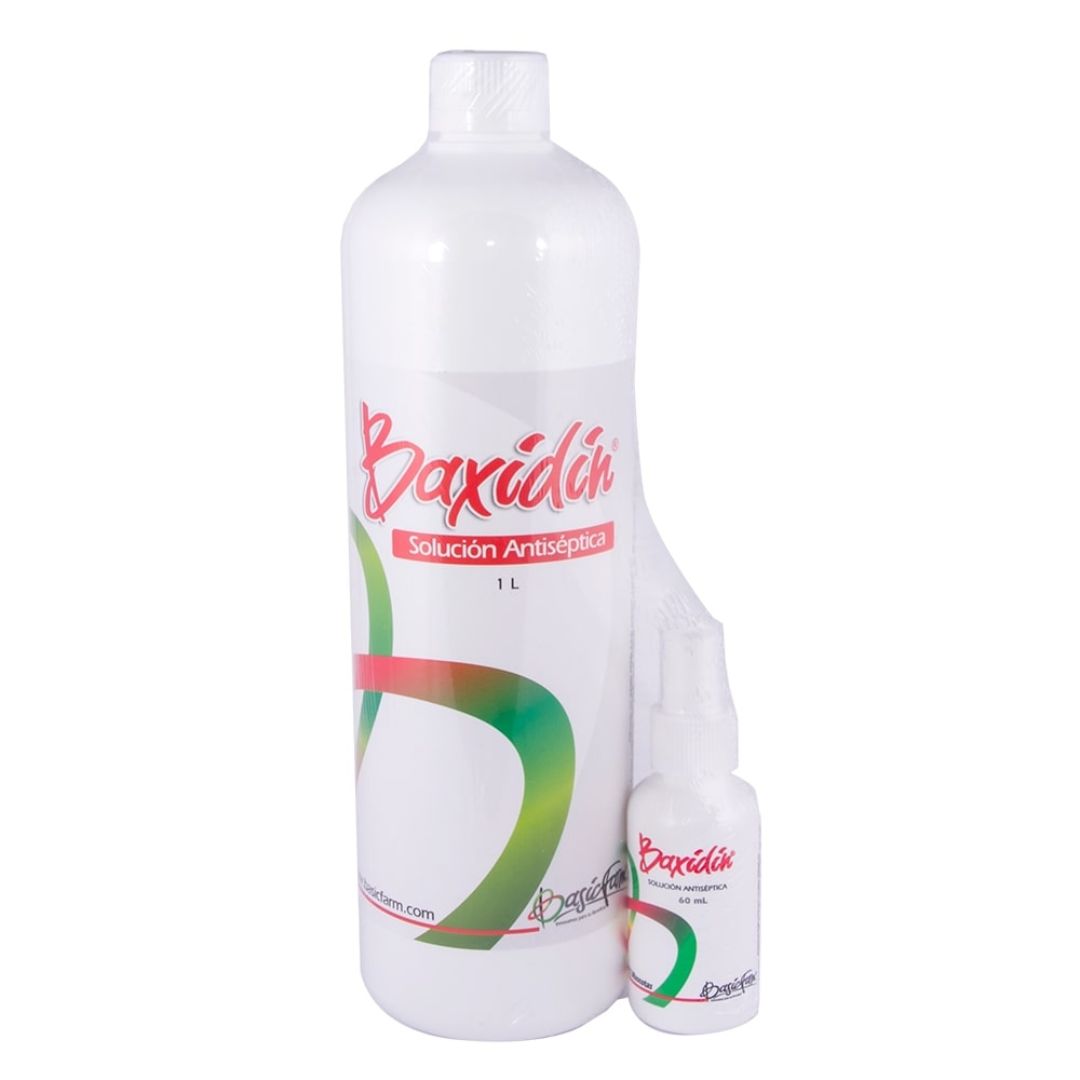 Aplicar BAXIDIN puro sobre : Heridas, quemaduras y/o ulceraciones en la piel, antiséptico de uso vaginal, prepucial, bucal (gingivitis, alveolitis, estomatitis y placa dental), conducto auditivo externo y preparación antiséptica prequirúrgica, desinfección objetos inanimados.