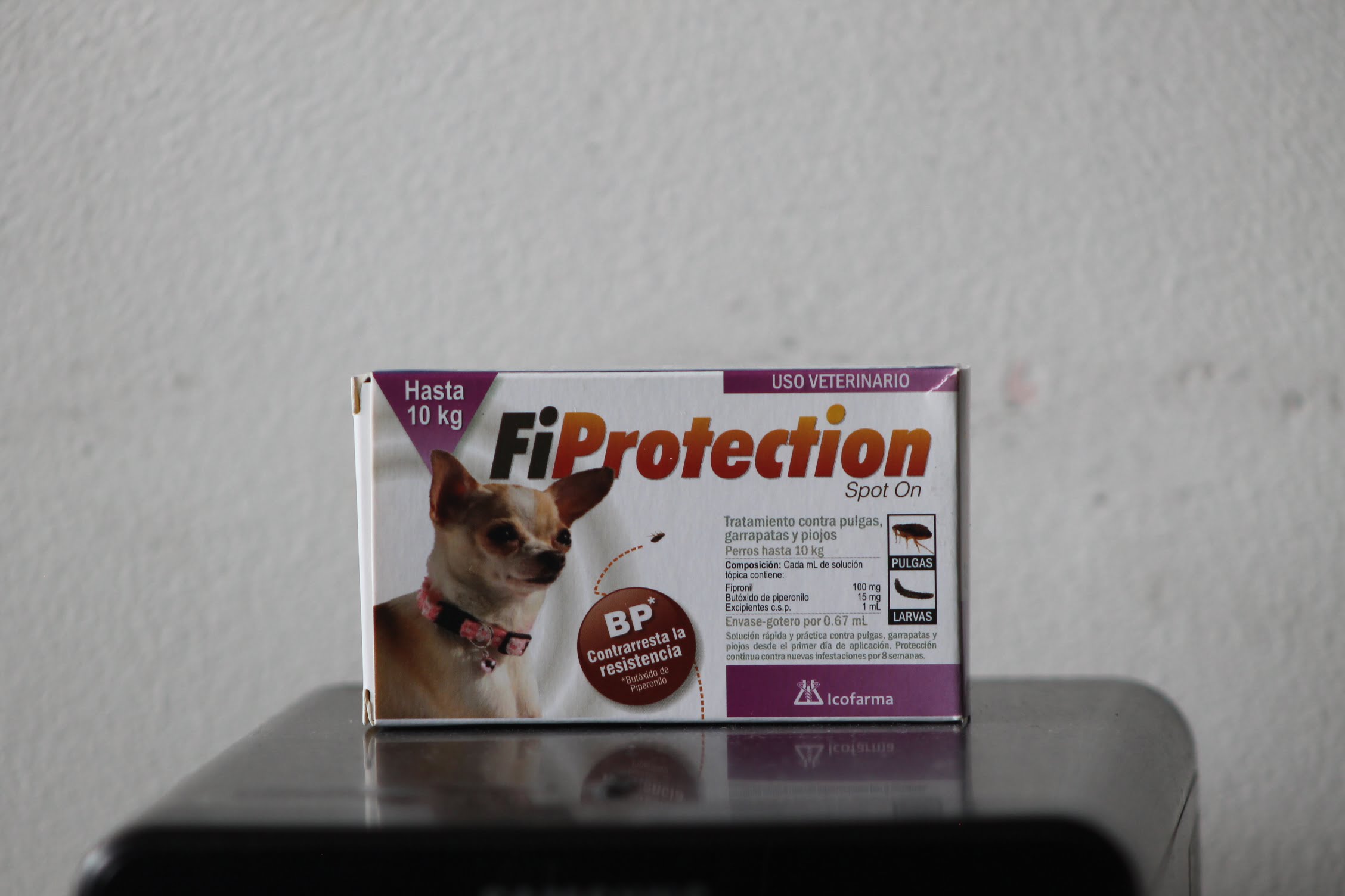 Cada mL de solución tópica contiene: Fipronil 100 mg, butóxido de piperonilo 15 mg y excipientes c.s.p.1 mL.