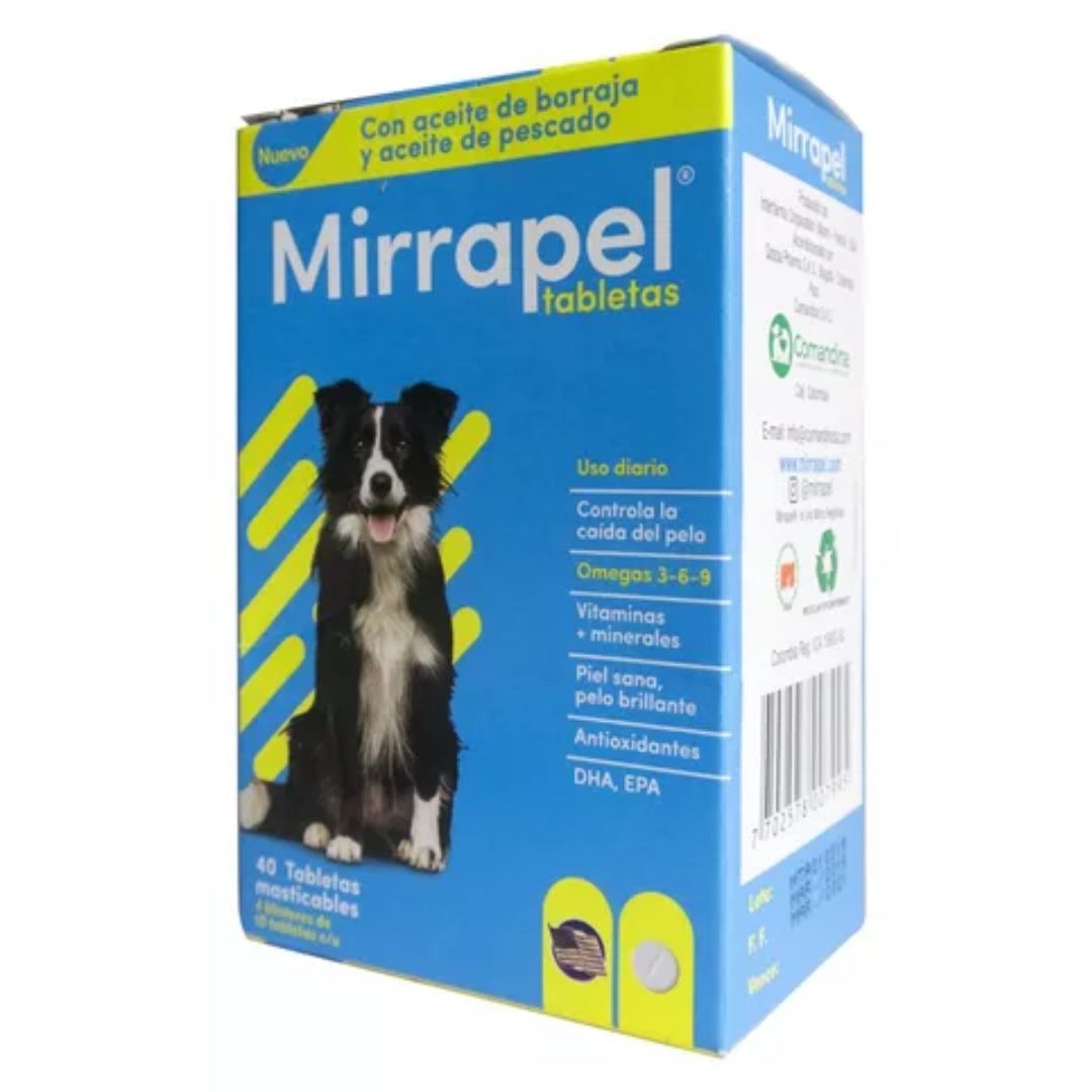 Administra Mirrapel® Tabletas a diario vía oral ofreciendo directamente las tabletas a tu mascota o adicionándolas enteras o trituradas con el alimento seco o húmedo en la cantidad siguiente: Machos y hembras adultos: 1 tableta por cada 5 kg de peso vivo, Hembras gestantes y lactantes, perros y perras seniles o convalecientes, en entrenamiento deportivo o actividad física intensa: 1 tableta por cada 4 kg de peso vivo.