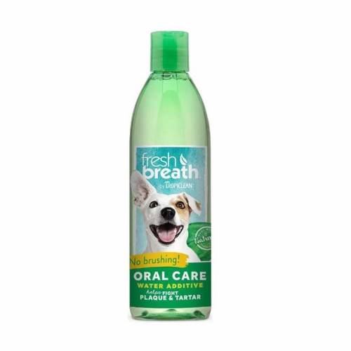 El aditivo para agua para el cuidado bucal Fresh Breath de TropiClean puede ayudar a remediar el mal aliento, respaldar la salud bucal de su perro y brindarle un aliento fresco, sin necesidad de cepillarse. Oral Care Water Additive ayuda a combatir el mal aliento y proporciona hasta 12 horas de aliento fresco cuando se usa diariamente como parte de una rutina de cuidado bucal.