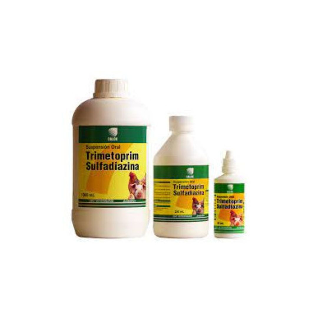 Mecanismo de acción: TRIMETROPIM SULFADIAZINA CALOX es la unión de 2 quimioterapicos que ejercen un sinergismo de potenciación con un resultado de acción bactericida de amplio espectro. TRIMETOPRIM SULFADIAZINA CALOX contiene una sulfonamida que es un análogo estructural y antagonista competitivo del PABA, que es utilizado por la bacteria para la síntesis del ácido fólico. El Trimetoprim es un inhibidor competitivo de la dihidrofolato reductasa microbiana, enzima necesaria para reducir el dihidrofolato a tetrahidrofolato. De esta forma se realizan 2 bloqueos simultáneos en la síntesis del ácido fólico, sustancia necesaria para la vida bacteriana. Algunas bacterias pueden utilizar folato preformado por lo que no son afectadas.